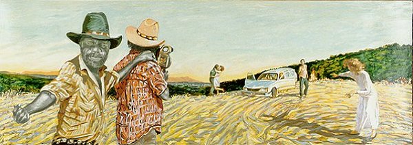 ‘In the soft light of dawn’ is a widescreen multi-layered and multi-textured suite comprising four distinct sections: free verse, couplets (in the style of TGH Strehlow in Songs of Central Australia), haiku, and sonnet. The poem directly references the painting ‘Anthropology: being themselves’ by Alice Springs artist Rod Moss.